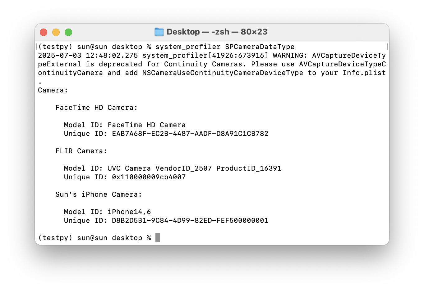 system_profiler SPCameraDataType