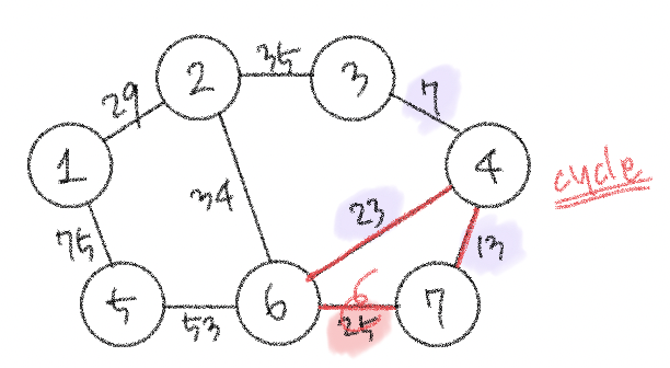 다 이해했고 다 좋은데 사이클이 발생하는 경우를 구분하는 걸 어떻게 구현할지만 고민하면 될 것 같다. . 간선이 연결하고 있는 두 노드가 이미 집합에 포함되어 있는 경우에 사이클이 발생하기 때문에 그걸 어떻게 파악할지 알아보자.