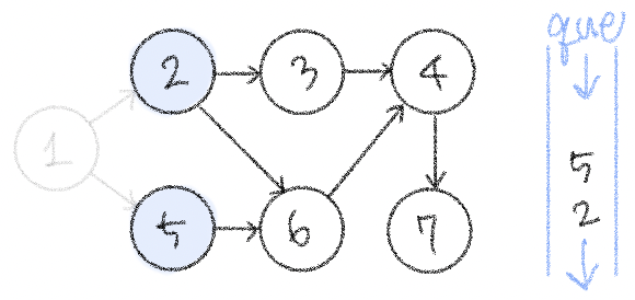 ✧ 큐에서 원소를 꺼내 해당 노드에서 출발하는 간선을 그래프에서 제거