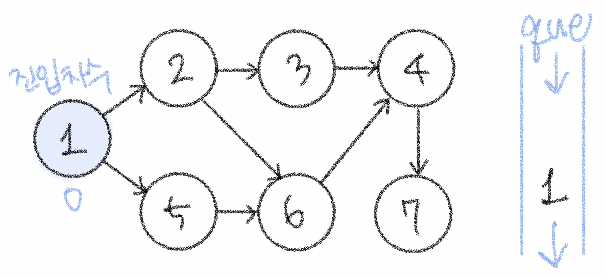 𝟙. 진입차수가 0인 노드를 큐에 넣기